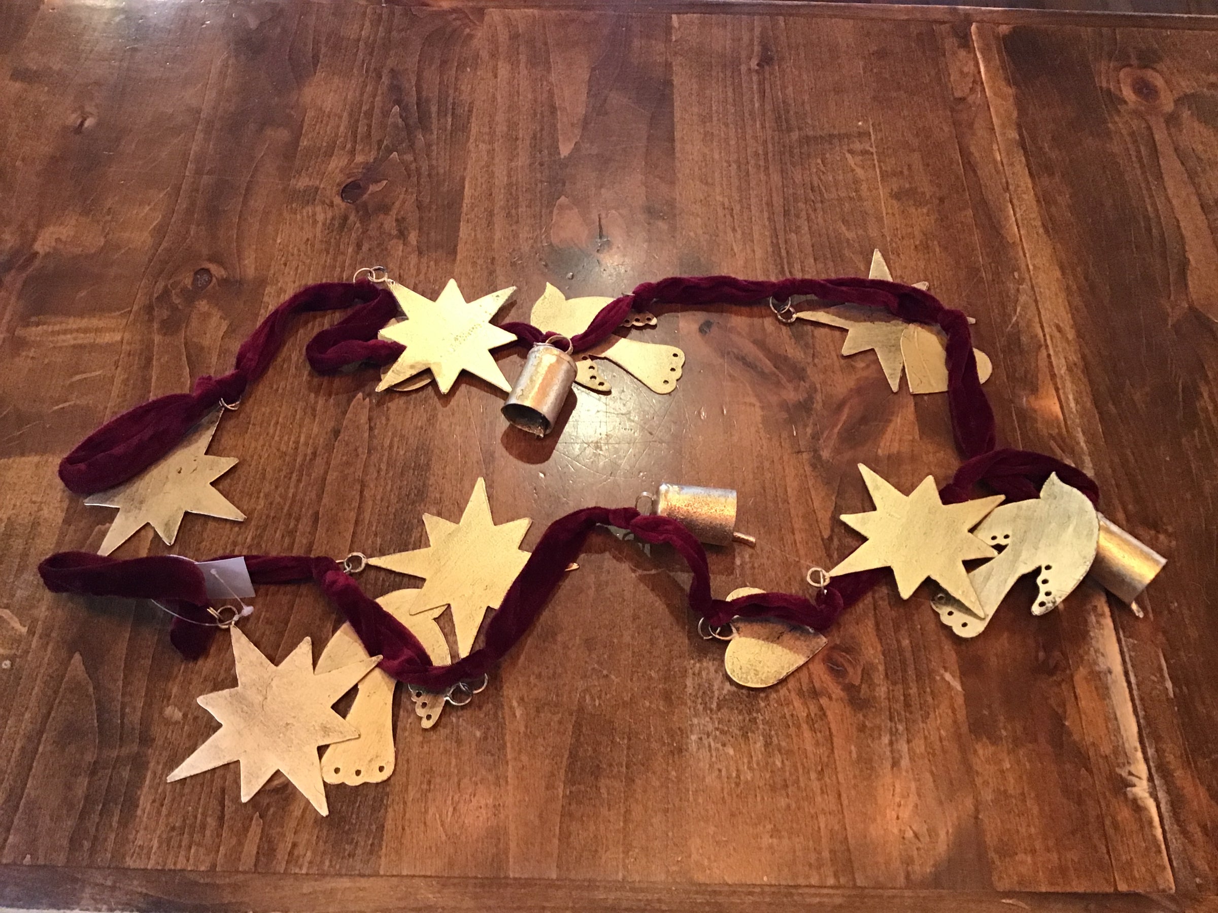 Christmas Charm Garland w Maroon Velvet Ribbon